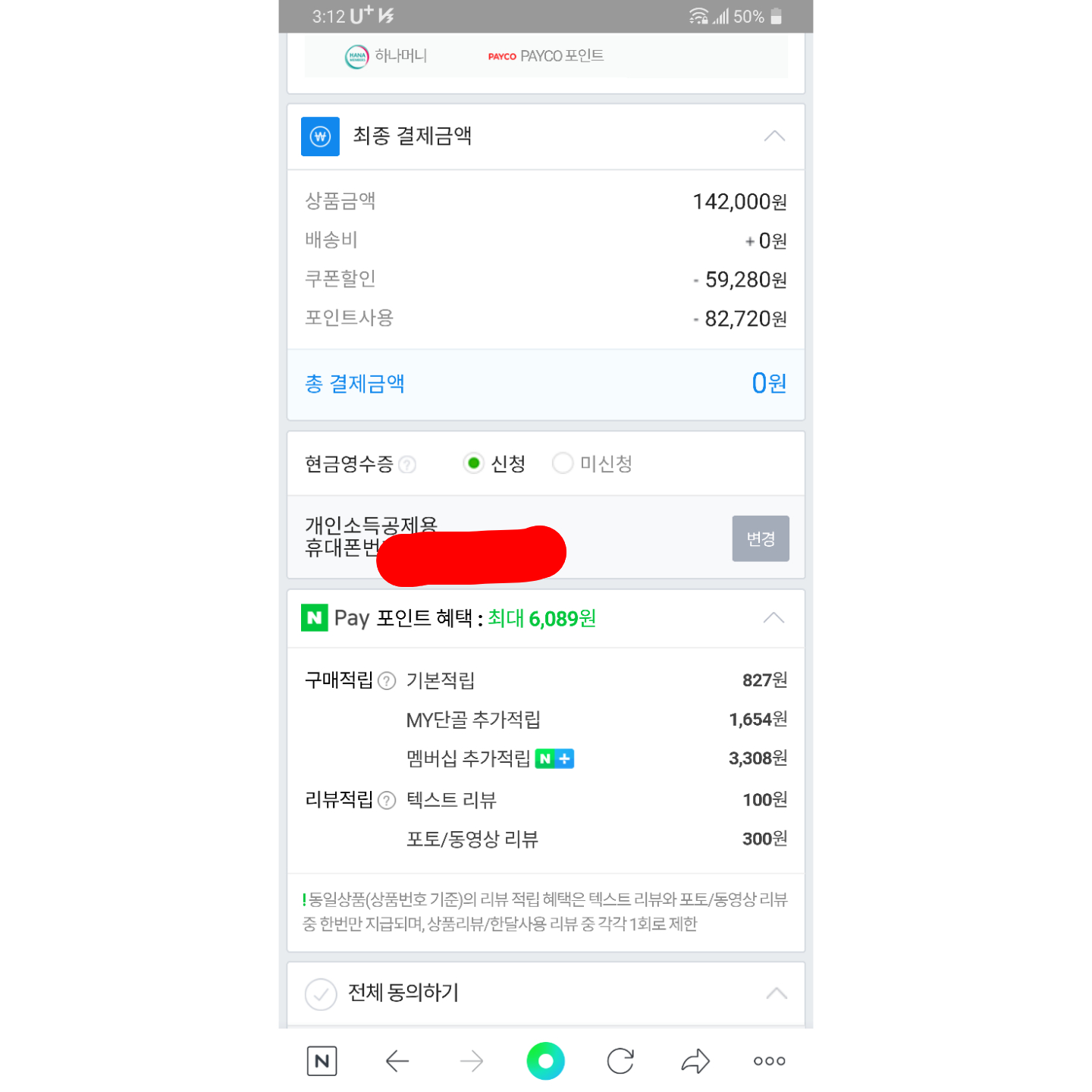 기본 적립에 MY단골 2%, 네이버 플러스 멤버쉽 5%로 8만원짜리 물건을 사고 6,000원 가량 적립받았다.