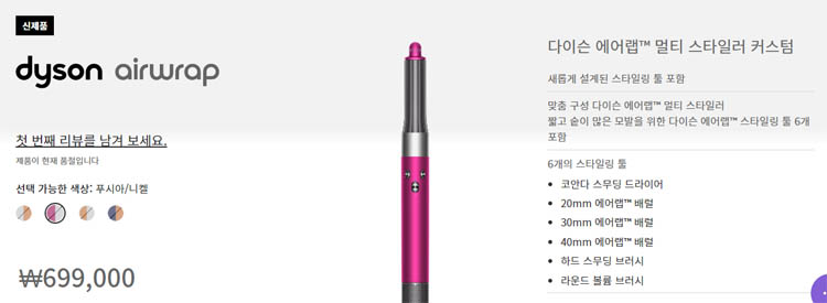 하지만 다이슨 에어랩 신상에는 저렴한 단일 배럴 제품이 없어서 조금 아쉽습니다.